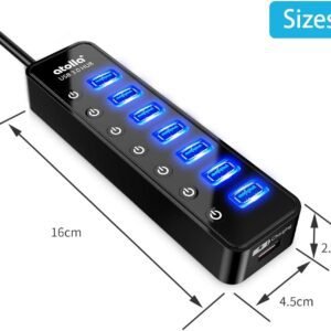 This 7-port USB 3.0 data hub can instantly expand 1 USB 3.0 port to 7 external USB 3.0 data ports for keyboard, mouse, printer, hard drivers and more USB devices, syncing data at blazing speeds up to 5Gbps in no time, this USB 3.0 splitter offers a charging dedicated port, which is able to charge your iPhone, iPad faster and safer. With the 5V/4A power adapter, it can provide charging power up to 2.4A .