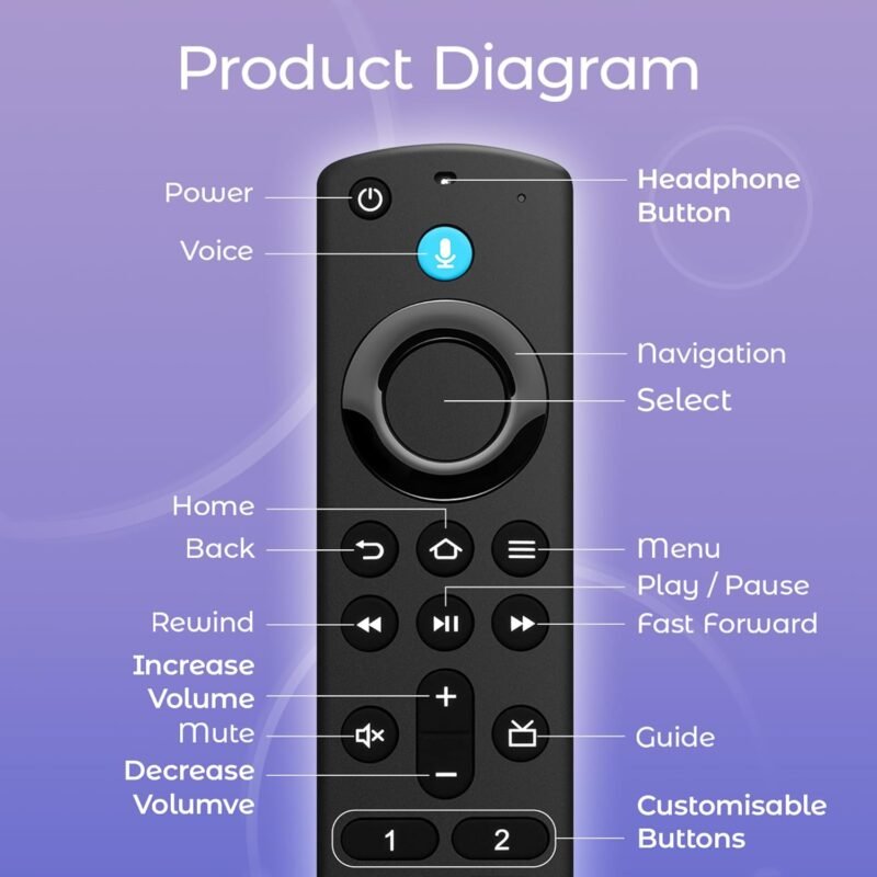 Replacement Remote Control for Smart TV 3rd Gen, TV Stick(2nd Gen/3rd Gen/4K/4K Max/Lite), TV Cube